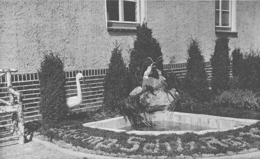 Eingang an einem Block im Westfalenhof mit Rabatte einer Kompanie eines Schützen-Regiment |
