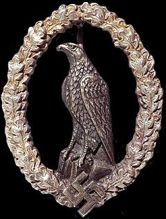"Das Fliegererinnerungsabzeichen wird für die Dauer des Krieges nicht mehr verliehen. Bei ehrenvollem Ausscheiden aus dem fliegenden Personal verbleibt das als Tätigkeitsabzeichen getragene Lw.Fliegerabzeichen dem Beliehenen. Das Anlegen des zur Erinnerung belassenen Lw.Fliegerabzeichens zur bürgerlichen Kleidung auch in verkleinerter Form als Anstecknadel wird genehmigt. . . . Bereits im Kriege verliehene Fliegererinnerungsabzeichen können in die früher getragenen Lw.Flieger- bzw. Fallschirmschützenabzeichen umgetauscht werden . . ."2 |