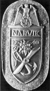 Artikel 1 Zur Erinnerung an den heldenmütigen Kampf, den die in echter Waffenbrüderschaft bei Narvik fechtenden Verbände des Heeres, der Kriegsmarine und der Luftwaffe siegreich bestanden haben, stifte ich den Narvikschild.