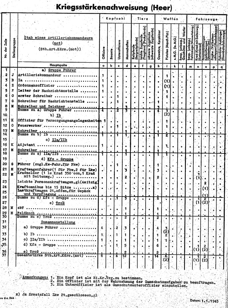 Einheit: Stab eines Artilleriekommandeurs (mot)