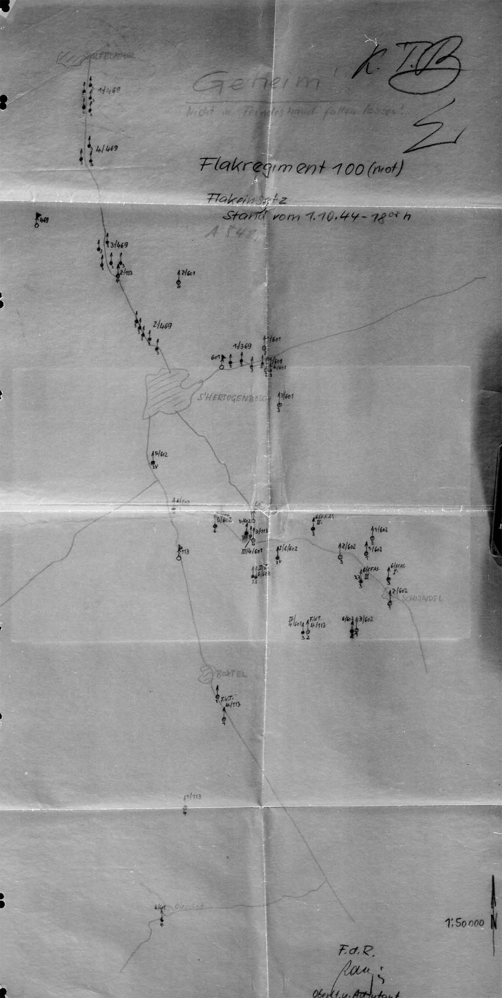 Einsatz des Regiments mit unterstellten Batterien und Abteilungen am 1. Oktober 1944 bei S'Hertogenbosch