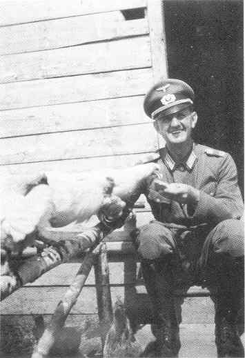 Regimentskommandeur Oberst Lott mit seinen Hühnern. | Oberst Lott mit seinen Hühnern. |