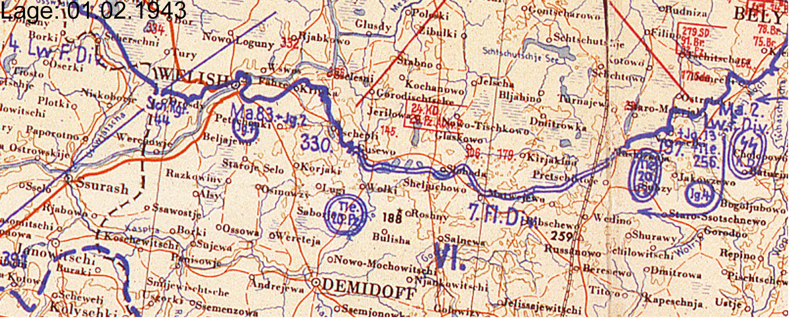 | Januar | VI | 9. Armee | Mitte | Rshew (Lagekarte) (Lagekarte) (Lagekarte) |