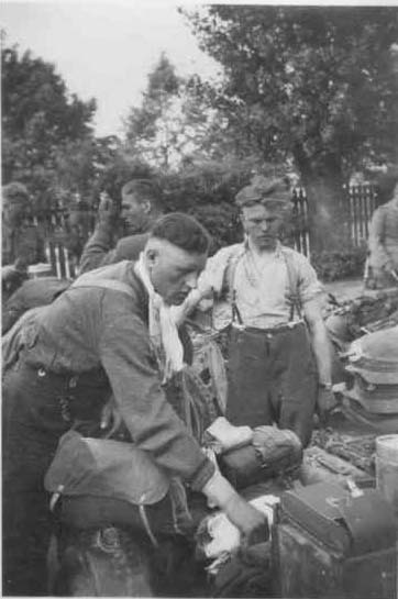 Ein Melde-Krad des Regiments. | Rast und technischer Dienst. |