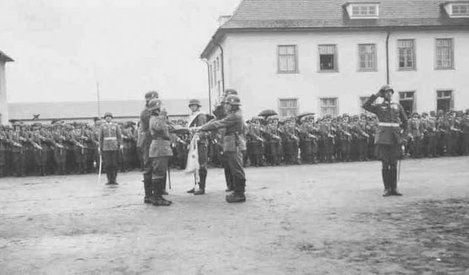Vereidigung der 9. Kompanie. | Der Fahneneid. Der Besitzer des Fotos hat sich links markiert. |