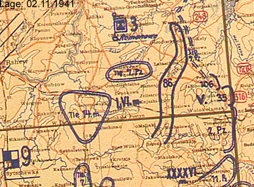 | 17. September | Panzergruppe 3 | Mitte | Wiasma, Moskau (Lagekarte) (Lagekarte) (Lagekarte) |