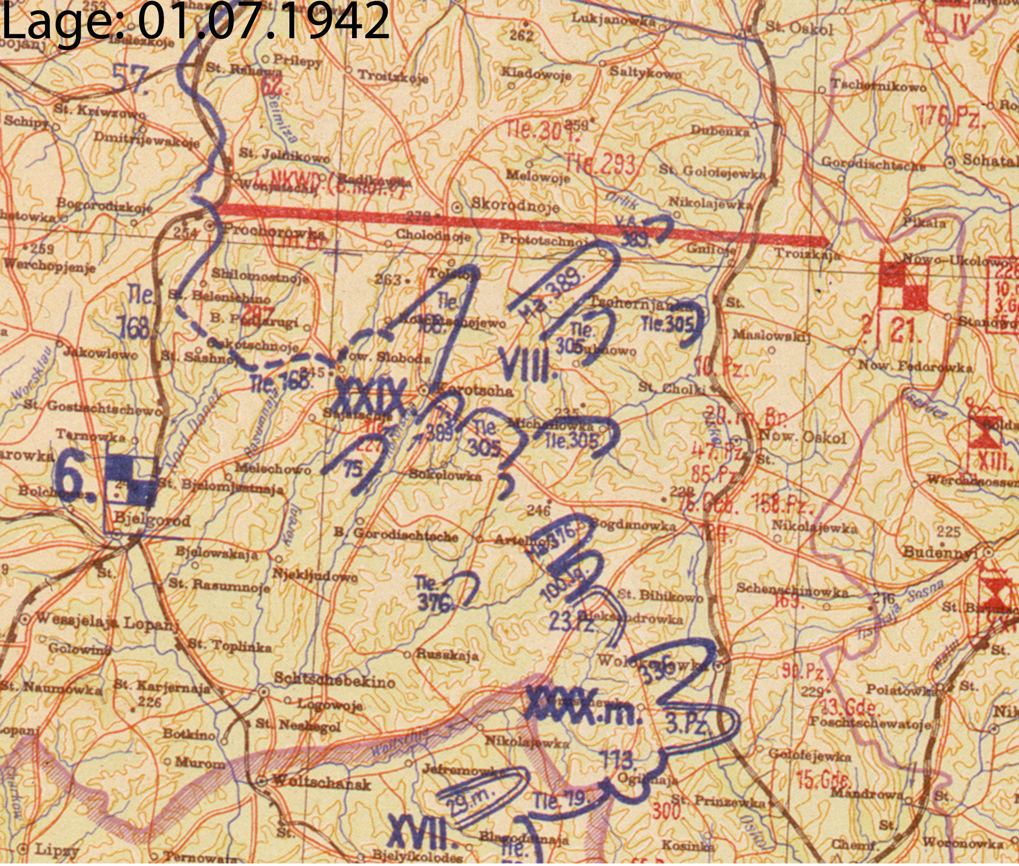 12., 22., 28., 30. und 32. Infanterie-Division sowie 3. Panzer-Division. Auftrag