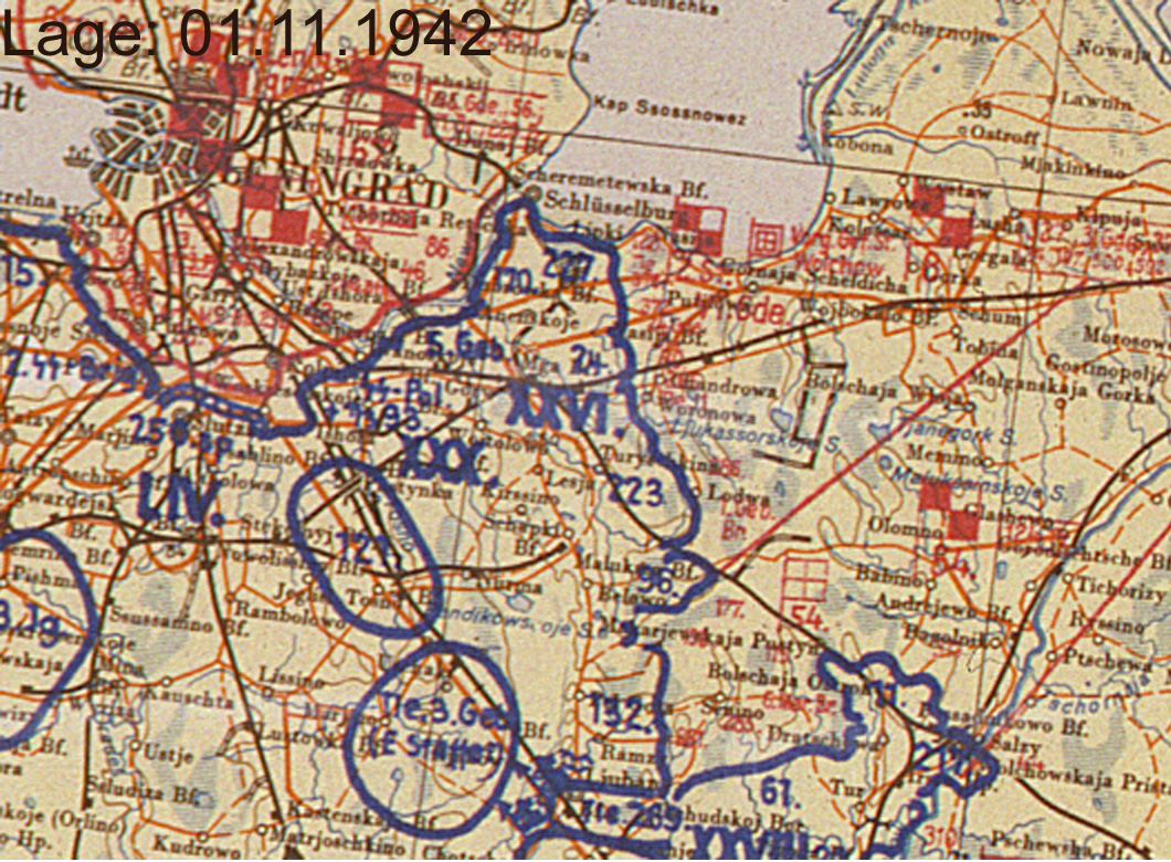 | Oktober | 11. Armee | Nord | Leningrad (Lagekarte) |