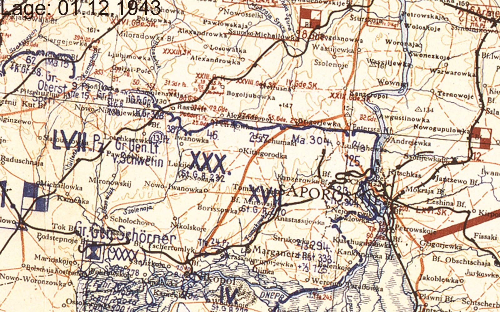 | 1. Januar | 6. Armee | A | Nikopol / Uman (Lagekarte) (Lagekarte) |