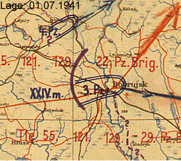 Doppelschlacht von Bialystok und Minsk. Am 29. / 30. Juni überschritt sie bei