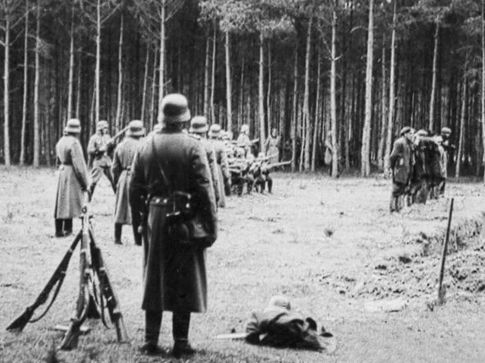 Die heimlich gemachte Aufnahme von der Exekution der männlichen Bevölkerung des Dorfes Skloby durch das Pol.Btl. 51