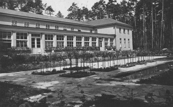 Park mit Schwänen; Im Hintergrund sind die Fuchsberg-Kasernen zu erkennen 1937 |