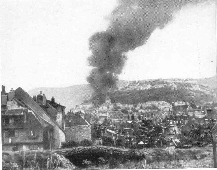 Das brennende Besançon während des deutschen Einmarsches 1940.