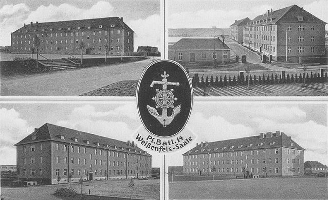 1935 begann mit dem Aufbau der Wehrmacht auch der Bau der Pionier-Kaserne. Die Kaserne wurde an der Zeitzer Straße erbaut. Als erster Truppenteil zog in die Kaserne das Pionier-Bataillon 14 ein. Im Krieg wurde dann das Pionier-Ersatz-Bataillon 14 in der Kaserne stationiert.