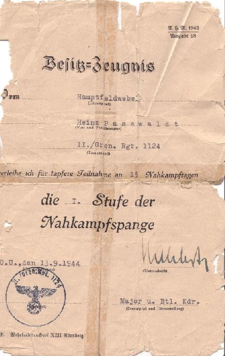 Die Nahkampfspange wurde am 25. November 1942 gestiftet. Nach letzten Erkenntnissen sind