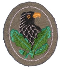 Das Scharfschützenabzeichen wurde am 20. August 1944 eingeführt. Das Abzeichen konnte an Soldaten verliehen werden, die als Scharfschützen eingesetzt waren. Es wurde am rechten Ärmel, über allen anderen Abzeichen, allerdings nicht zum großen Dienstanzug, getragen. Das Abzeichen zeigt einen schwarzen Adlerkopf, zwischen zwei grünen Eichenblättern mit einer braunen Eichel, auf ovalem, grauen Grund. Adlerauge und Schnabel waren aus gelber, die Federn aus weißer Baumwolle. Das Abzeichen wurde in drei Klassen verliehen. Die dritte Klasse bekam man für 20 "Erfolge", die zweite Klasse (mit silbernem Rand) für 40 "Erfolge" und die erste Klasse (mit goldenem Rand) für 60 "Erfolge", wobei die Abschüsse gemäß der Allg. Heeresmitteilungen 1944, 27. Ausg., S. 255, Ziff.468; und 1944, 23. Ausgabe S. 299, Ziff. 548 erst ab dem 1. September 1944 zählten.