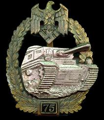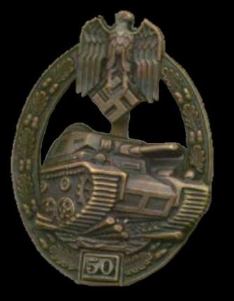Das Panzerkampfwagenabzeichen in Bronze wurde "in Anerkennung der in vielen Sturmangriffen gezeigten Bewährung aller Teile des Heeres und als Ansporn vollsten Einsatz des einzelnen Mannes" vom Oberbefehlshaber des Heeres, Generaloberst Brauchitsch, für die Angehörigen der Schützenregimenter, der Kradschützenbataillone der Panzerdivisionen und der Panzerspäh-Einheiten gestiftet. Die Verleihungsbedingungen waren die selben wie beim Silbernen Panzerkampfwagenabzeichen. Am selben Tag wurde das »Panzerkampfwagenabzeichen« in »Panzer-Kampfabzeichen« umbenannt.3 |