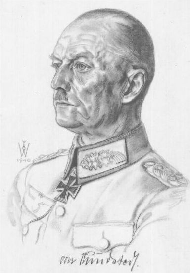 Am 1. Juni 1939 wurde er wieder in den aktiven Dienst einberufen. Er wurde zum Oberbefehlshaber der 12. Armee ernannt. Durch deren Umbenennung Anfang September 1939 wurde er dann zum Oberbefehlshaber der Heeresgruppe Süd ernannt. Diese führte er dann im Polenfeldzug. Für die Erfolge seiner Heeresgruppe wurde er am 30. September 1939 mit dem Ritterkreuz des Eisernen Kreuzes ausgezeichnet. Anfang Oktober 1939 wurde er durch seine Position gleichzeitig zum Oberbefehlshaber Ost ernannt. Am 26. Oktober 1939 wurde er durch die Umbenennung seines Stabes zum Oberbefehlshaber der Heeresgruppe A ernannt. Mit dieser verlegte er jetzt an die Westfront. Diese Heeresgruppe führte er dann von Mai bis Juni 1940 während des Frankreichfeldzuges. Er führte dabei den Vorstoß der Panzerkräfte durch die Ardennen bis zur Kanalküste und umklammerte dort alliierte Streitkräfte. Am 19. Juli 1940 wurde er zum Generalfeldmarschall befördert. Am 1. Oktober 1940 wurde er dann auch zum Oberbefehlshaber West umbenannt. Erst Ende des Frühjahrs verlegte er dann mit seinem Stab in den Osten. Dort wurde der Stab für den Angriff auf die Sowjetunion zur Heeresgruppe Süd umbenannt. Ab dem 22. Juni 1941 führte von Rundstedt zu Beginn des Ostfeldzuges beim Angriff in die Ukraine hinein. Im Oktober 1941 war Rundstedt mit dem sogenannten Reichenau-Befehl, in dem Walter von Reichenau seine Soldaten zur Unterstützung von Hitlers "Weltanschauungskrieg" und zur "Vernichtung des jüdischen Untermenschentums" aufruft, voll einverstanden. Am 3. Dezember 1941 zog Rundstedt gegen Hitlers Befehl die Heeresgruppe aus taktischen Gründen aus Rostow zurück. Daraufhin wurde er von Hitler abberufen und durch Generalfeldmarschall Walter von Reichenau ersetzt. Trotzdem erhielt er zu seinem Geburtstag nur wenige Tahe später eine Dotation in der nicht gerade unerheblichen Höhe von 250.000 Reichsmark. Am 8. März 1942 wurde er reaktiviert und als Nachfolger von Generalfeldmarschall Erwin von Witzleben mit der Führung beauftragt als Oberbefehlshaber West und Oberbefehlshaber der Heeresgruppe D. Am 1. Mai 1942 wurde er dann auch offiziell als Oberbefehlshaber West und Oberbefehlshaber der Heeresgruppe D eingesetzt. Im August 1942 misslang ein alliiertes Landeunternehmen bei Dieppe. Entgegen geltendem Kriegsrecht ließ von Rundstedt die in Kriegsgefangenschaft geratenen britischen Soldaten an die Gestapo ausliefern. Nachdem es nicht gelungen war, die alliierten Truppen im Juni 1944 von der Landung in der Normandie abzuhalten, musste von Rundstedt den Posten des Oberbefehlshabers West an Generalfeldmarschall Günther von Kluge abtreten. Am 2. Juli 1944 wurde er in die Führerreserve versetzt und dabei dem Führer z.V. gestellt. Wirtschaftlich wurde er dem Wehrkreis IX zugeordnet. Seine Privatanschrift war der Skagerakplatz 32 in Kassel mit der Telefonnummer 36341. Am 21. Juli 1944 verließ von Rundstedt die Westfront. Er wurde Vorsitzender des "Ehrengerichts" (Ehrenhof des Deutschen Reiches), welches die in das Attentat vom 20. Juli 1944 verwickelten Offiziere aus der Wehrmacht ausstieß und diese damit der Verurteilung durch den Volksgerichtshof auslieferte. Dabei waren neben ihm Generaloberst Guderian, die Generale Walter Schroth und Karl-Wilhelm Specht aktive Mitglieder. Vertreter waren die Generale Karl Kriebel und Heinrich Kirchheim. Am 5. September 1944 wurde von Rundstedt als Nachfolger vom Generalfeldmarschall Günther von Kluge wieder OB West. Über Generalfeldmarschall Keitel forderte von Rundstedt Hitler auf, den Krieg zu beenden. Am 18. Oktober 1944 hielt von Rundstedt anlässlich des Staatsaktes in Ulm die offizielle Trauerrede für Generalfeldmarschall Erwin Rommel. Im Winter 1944 gehörte er dem Planungsstab an, welcher die Ardennen-Offensive vorbereitete. Am 18. Februar 1945 wurde er mit den Schwertern zum Ritterkreuz des EIsernen Kreuzes mit Eichenlaub ausgezeichnet. Am 3. März 1945 wurde er wegen Differenzen mit dem OKW über die Taktik der Ardennenoffensive und wegen des erfolgten Rheinübertritts amerikanischer Truppen bei Remagen erneut seines Kommandos enthoben. Im Mai 1945 wurde er von amerikanischen Truppen in Bad Tölz gemeinsam mit seinem Sohn verhaftet und in britische Kriegsgefangenschaft übergeben. In Nürnberg fungierte er als Zeuge der Anklage in den OKW-Prozessen. Sein Sohn Leutnant Dr. Hans Gerd von Rundstedt wurde am 30. Januar 1947 aus der Kriegsgefangenschaft entlassen und starb am 12. Januar 1948 an Kehlkopfkrebs. Am 5. Mai 1949 wurde er wegen einer Herzerkrankung aus britischer Haft entlassen. Seine Frau war nach einem Schlaganfall im Januar 1952 teilweise gelähmt und starb am 4. Oktober 1952. Er selbst starb nicht einmal ein halbes Jahr später in einem Altersheim. Er wurde im Beisein von über 2.000 Trauergästen in Hannover-Stöcken beerdigt.