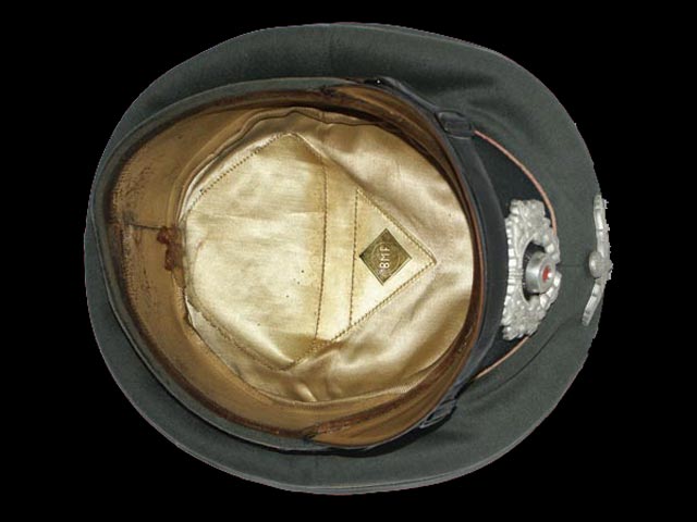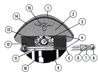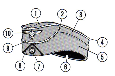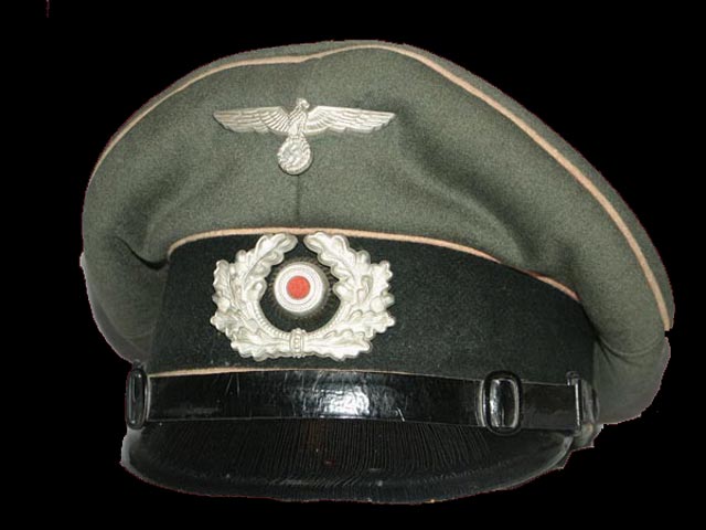 Adlerkokarde auf dem feldgrauen Besatzsreifen versehen. Die Deckelbiese und